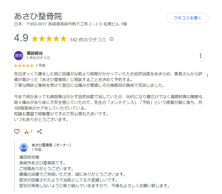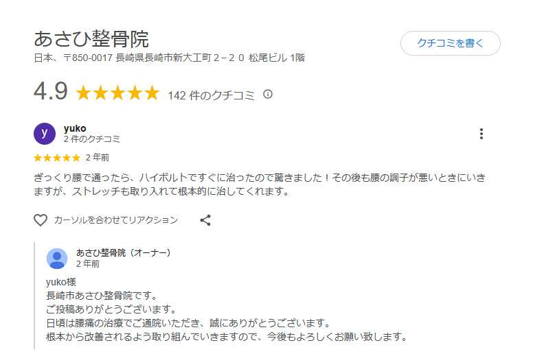 長崎市のあさひ整骨院では、ぎっくり腰の再発防止や日常生活で出来るケアもアドバイスさせて頂いており、ご好評を頂いております。
