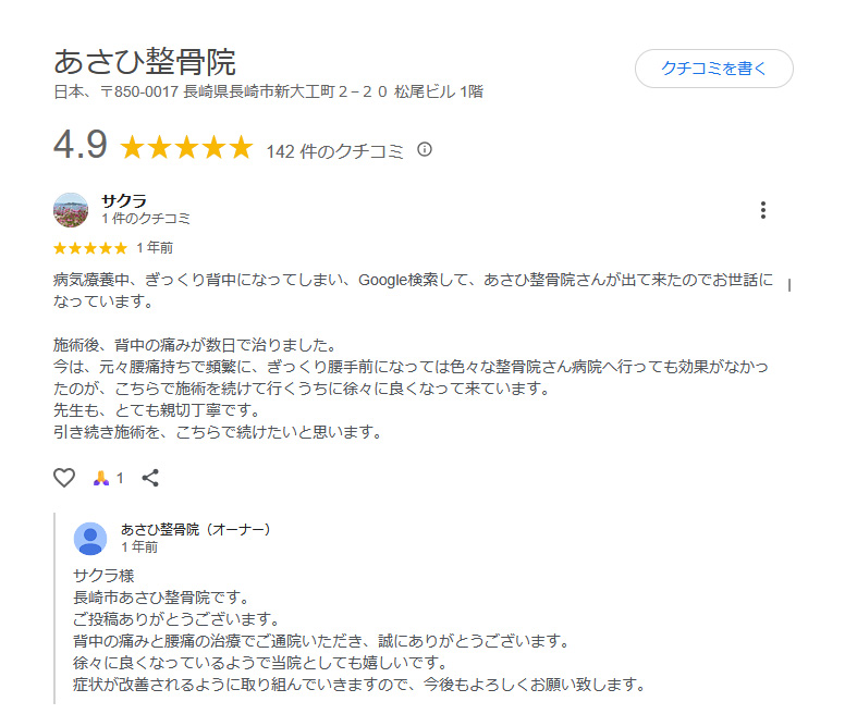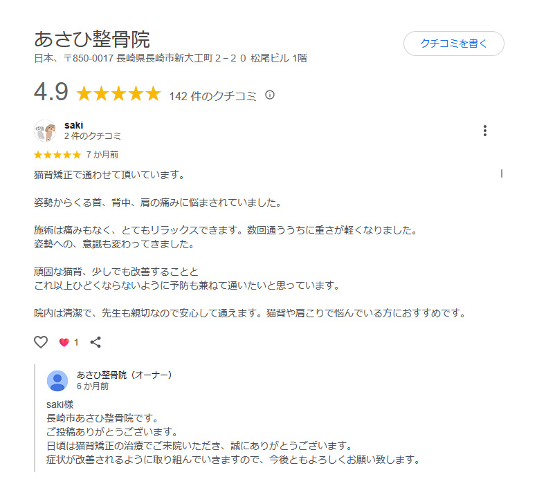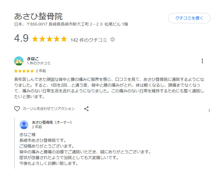 口コミ|あさひ整骨院 長崎市